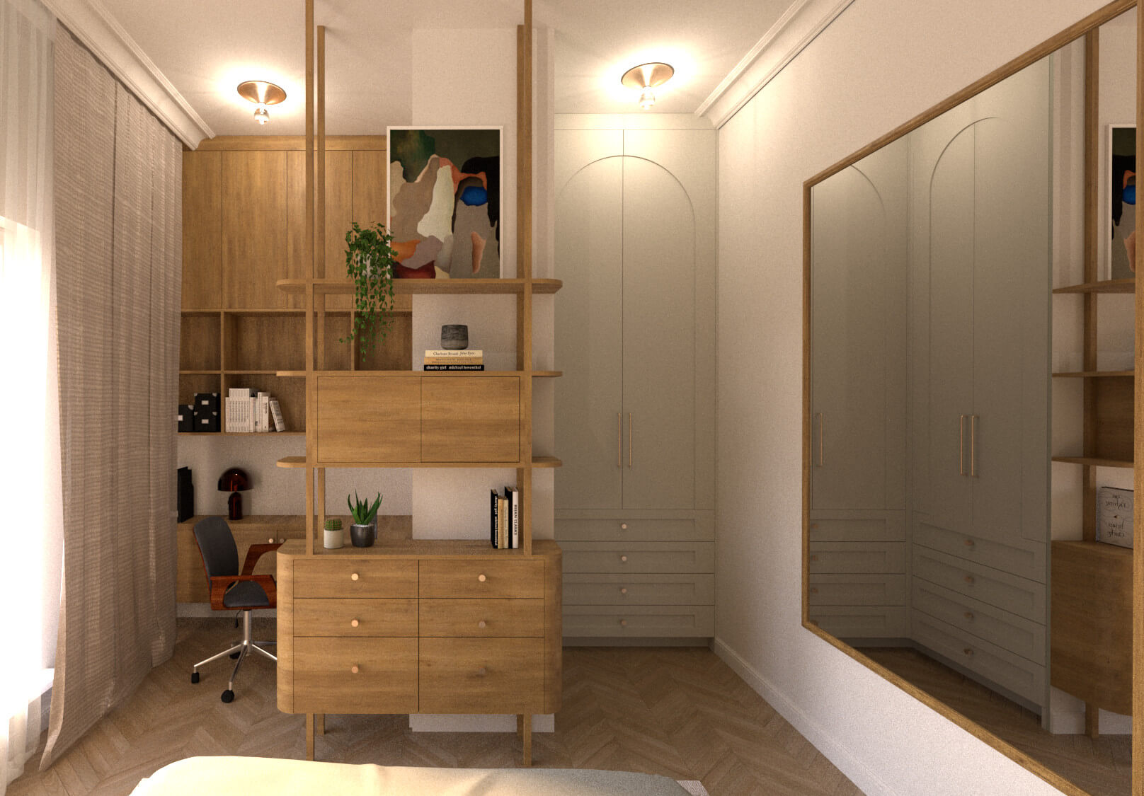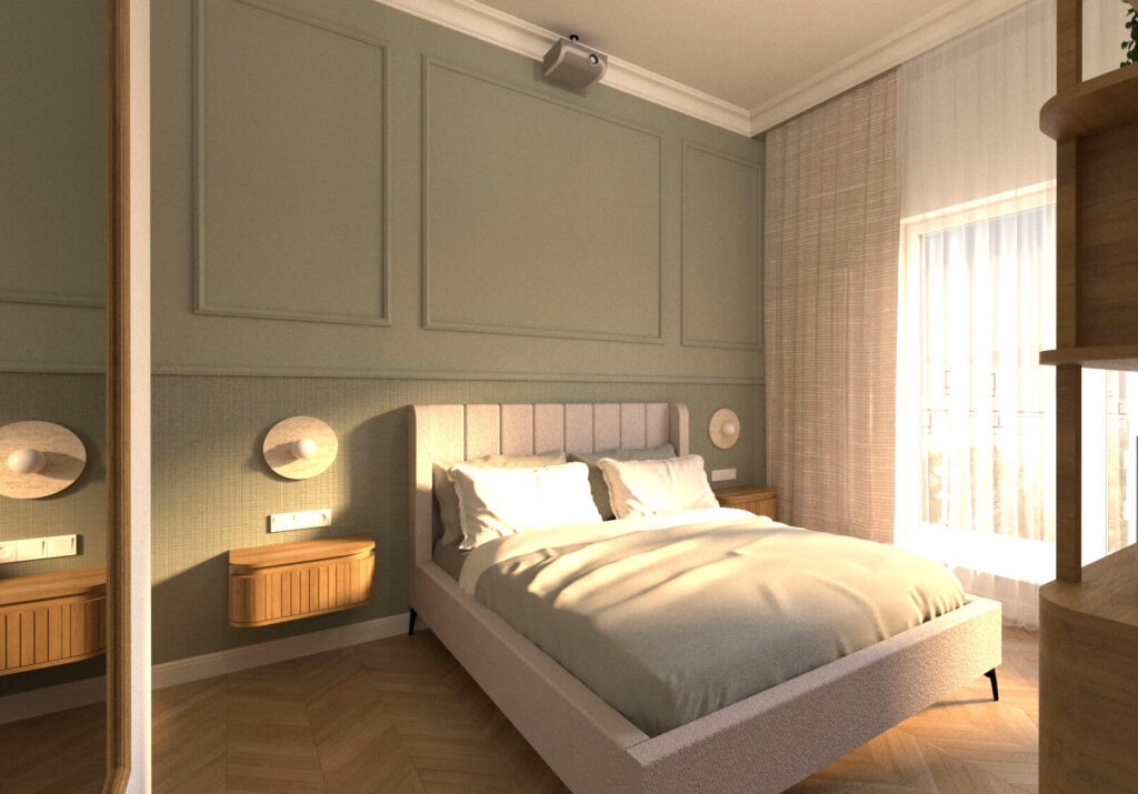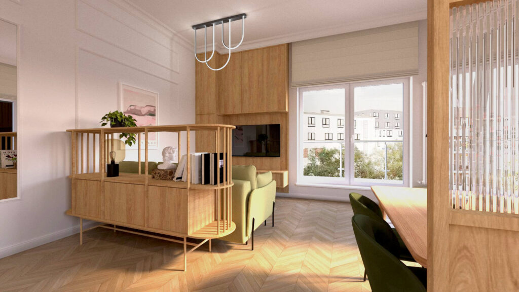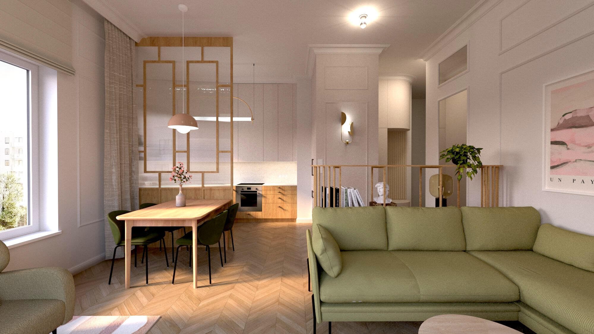 Głównym założeniem było stworzenie wnętrza ponadczasowego, łączącego elegancję klasyki z nowoczesnością i ciepłem domowego klimatu. Dzięki imponującej wysokości pomieszczeń, przekraczającej 3,3 m, możliwe było zaprojektowanie przestrzeni pełnej światła, oddechu i detalu.
