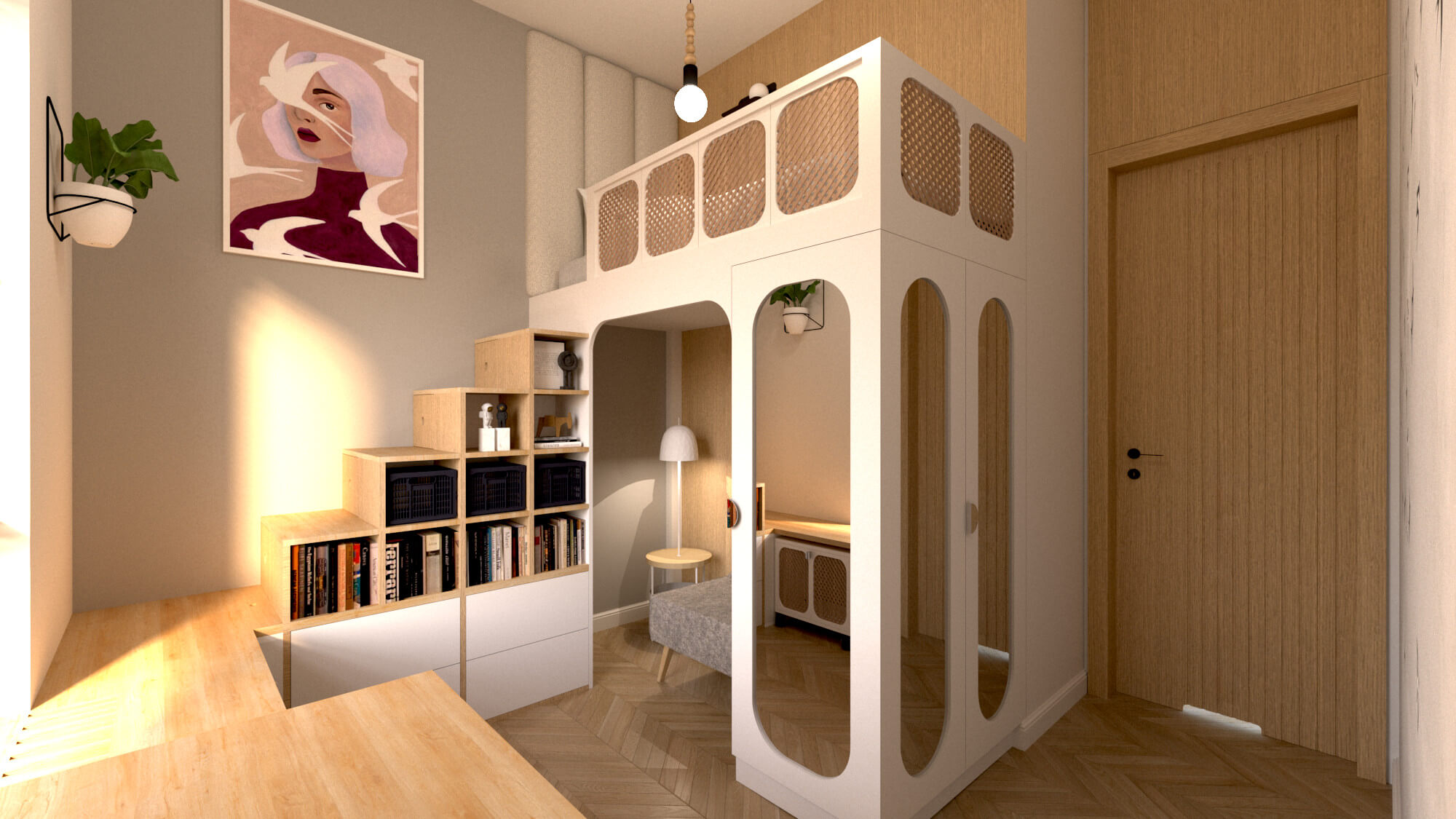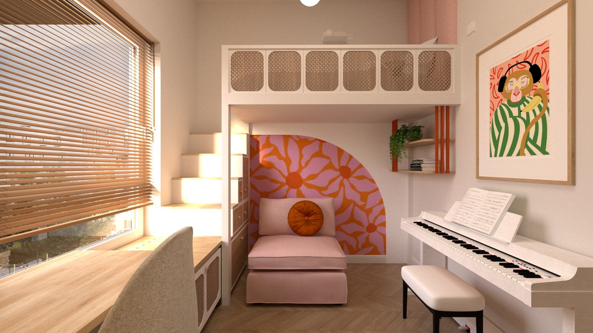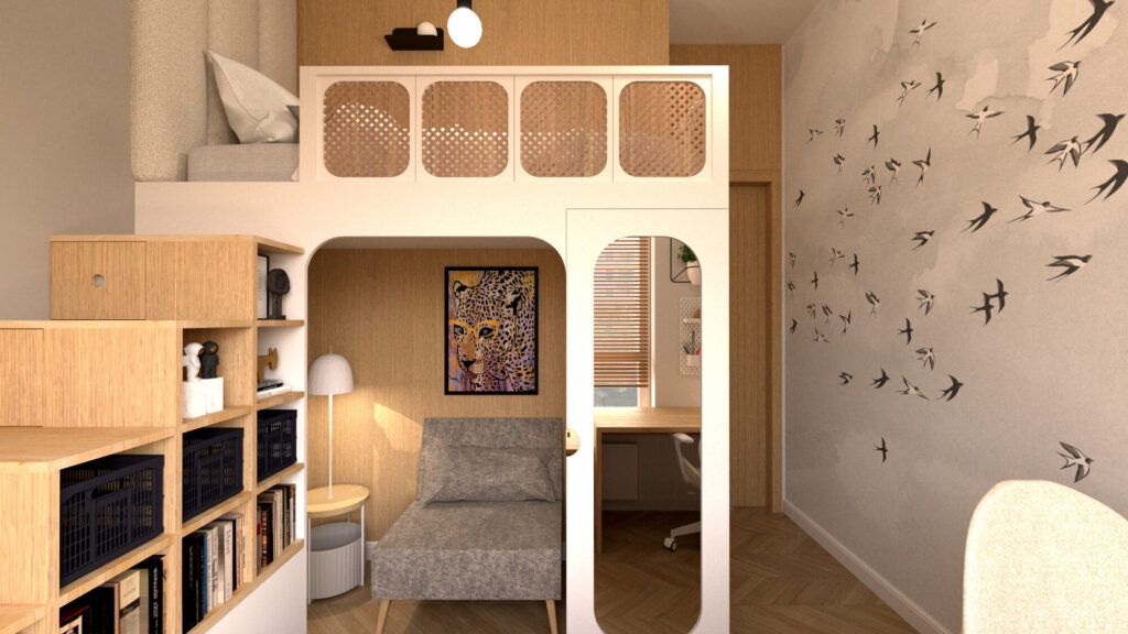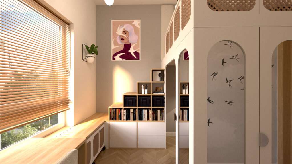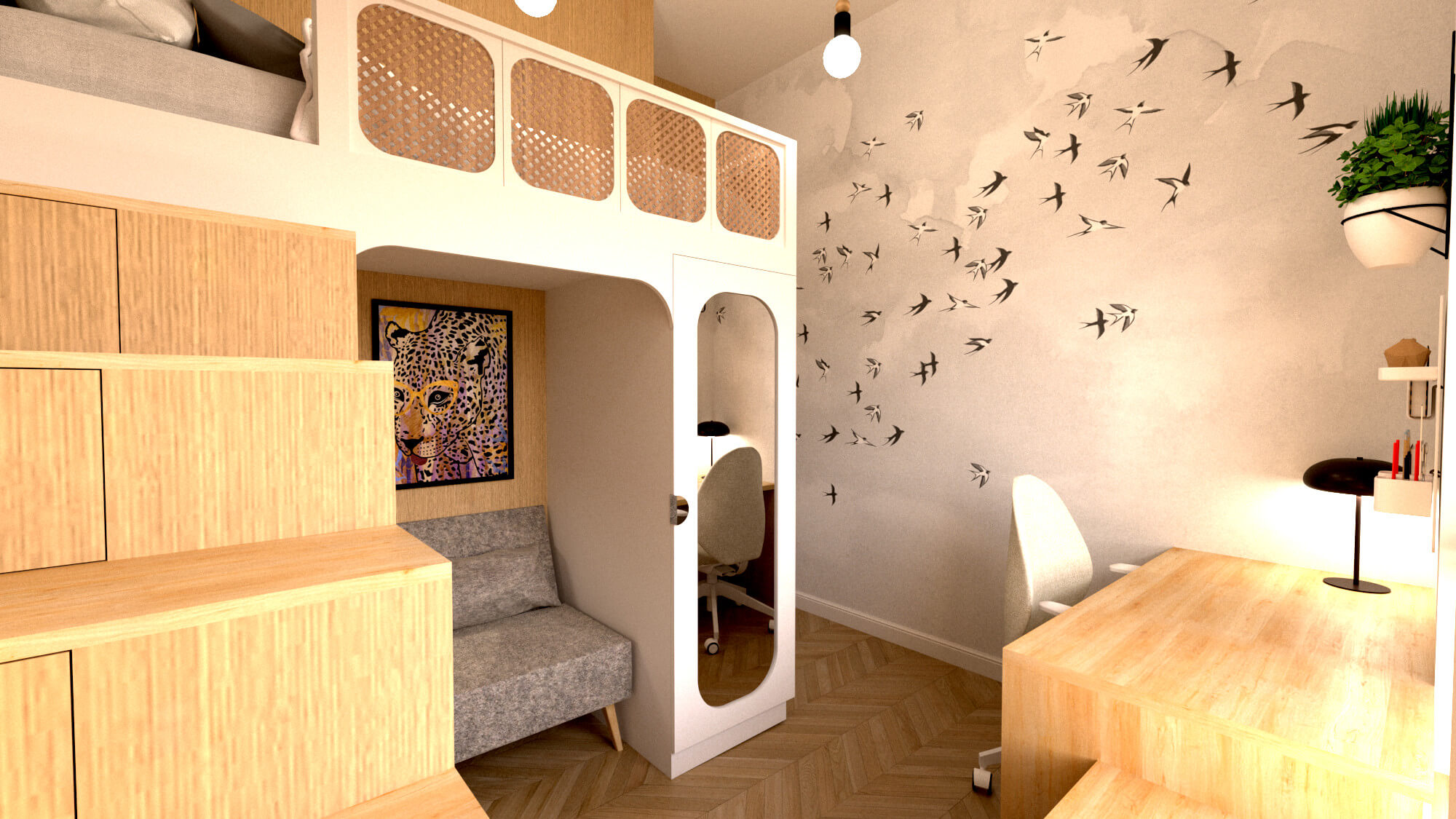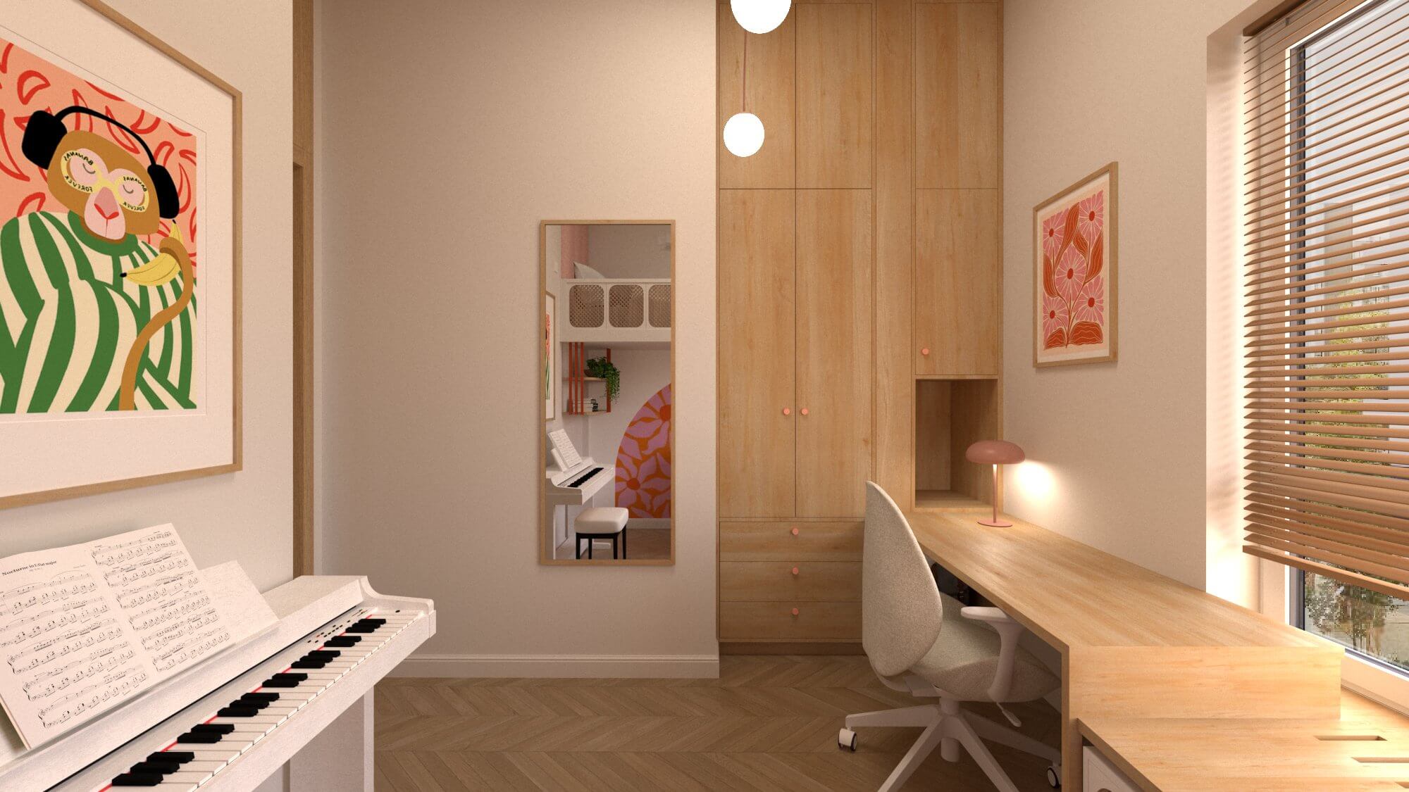 Projekt wnętrza 90 m² dla czteroosobowej rodziny